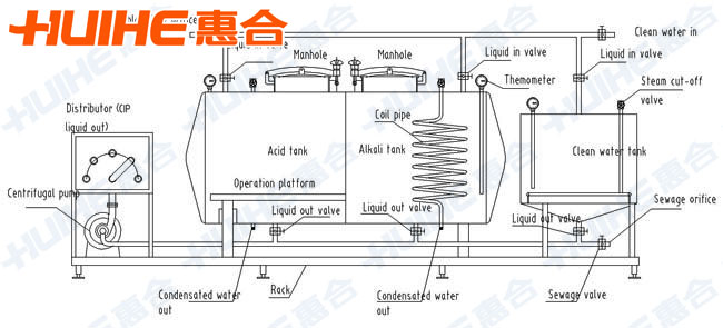 1. CIP cleaning system has characteristics such as economic operation, low cost, compact structure, small area, simple installation and maintenance. It can in-place clean the containers and pipes and other production device effectively. The entire cleaning process are processed in confined equipment (tank containers and pipeline), thus greatly reducing the chance of secondary contamination.