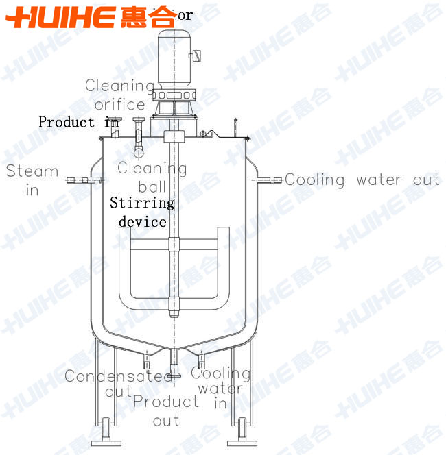 8、 Stirring device: top center stirring, reducer output shaft and the impeller shaft adopts loop connection, easy disassembling and cleaning;