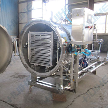 以罐頭為例,殺菌時(shí),由于加熱使罐頭溫度升高,殺菌鍋罐頭內(nèi)壓力會(huì)超過罐外(在鍋內(nèi))的壓力。為避免殺菌時(shí)玻璃瓶罐內(nèi)增壓而跳蓋,對(duì)馬口鐵罐兩端面凸出,必須施加反壓力,特別是對(duì)需要較高殺菌溫度的肉類罐頭更就如此。