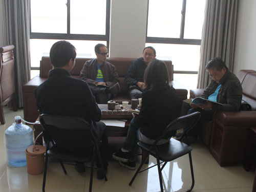 圖為客戶與外貿(mào)業(yè)務(wù)員及技術(shù)工程師進行詳情需求的洽談