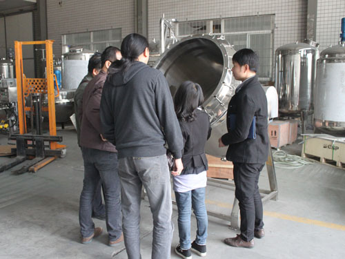 2015年4月21日下午,馬來西亞客戶需要采購夾層鍋、高壓蒸煮鍋殺菌鍋設(shè)備,來我公司與業(yè)務(wù)員和技術(shù)工程師進行具體細節(jié)的洽談,并到工廠參觀成品設(shè)備與現(xiàn)場制作流程。