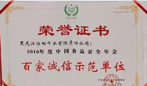 黑龍江恒陽(yáng)牛業(yè)有限責(zé)任公司在本屆年會(huì)上被評(píng)為“百家誠(chéng)信示范單位”、“管理創(chuàng)新三十佳案例”,還被本屆年會(huì)的承辦單位——中國(guó)食品安全報(bào)社授予“2016—2017年度中國(guó)食品安全報(bào)理事單位”,于曉鵬總經(jīng)理還榮膺中國(guó)食品安全年會(huì)組委會(huì)授予的“普法先進(jìn)工作者”稱號(hào)。