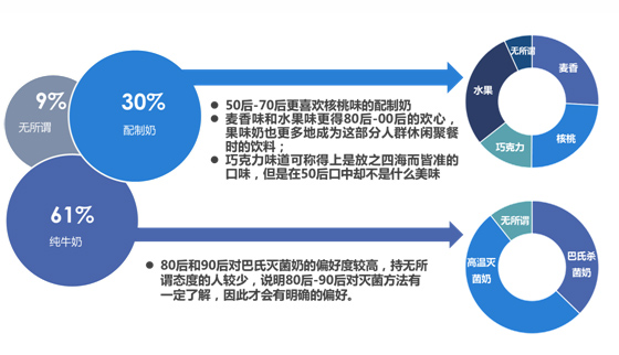 綜合年齡和區(qū)域分析發(fā)現(xiàn),中老年消費(fèi)者和70后消費(fèi)者的需求區(qū)域主要集中于西部地區(qū)的中小城市;而對(duì)于80、90和00后的消費(fèi)者,需求區(qū)域已經(jīng)開始向東部地區(qū)的一、二線城市轉(zhuǎn)移,液態(tài)奶廠商需要隨時(shí)關(guān)注市場(chǎng)需求的動(dòng)向來決定未來營(yíng)銷、鋪貨的策略等。