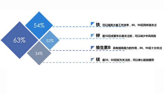 調(diào)查結(jié)果顯示,消費(fèi)者除關(guān)注蛋白質(zhì)和鈣兩項(xiàng)營(yíng)養(yǎng)指標(biāo)外,對(duì)維生素B、鐵和鉀元素的關(guān)注度也較高,希望可以標(biāo)注在包裝上。年輕人更多地將液態(tài)奶作為早餐飲品,老年人更多地將液態(tài)奶作為睡前飲品。