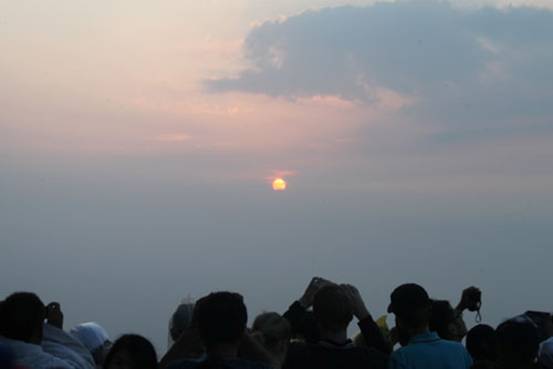 凌晨4點(diǎn)起來(lái)登上光明看日出,在很多人放棄之時(shí)太陽(yáng)突然從云霧中緩緩升起,這也給我們很大的啟示:不要輕言放棄,要堅(jiān)持到底!