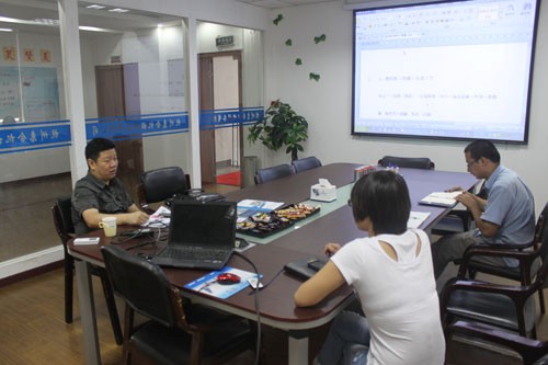 安徽客戶需要定制一套綠豆汁生產線設備,與銷售人員和工程師進行需求的洽談。